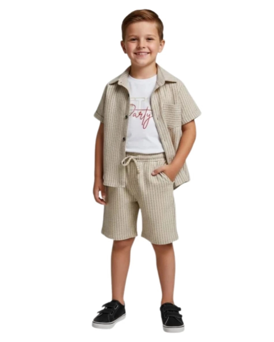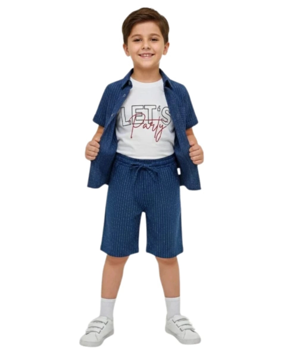 Lets Party Baskılı Yazlık Üçlü Erkek Çocuk Takım, 3-6 yaş arası erkek çocuklar için tasarlanmıştır. Yaz aylarında rahatlıkla kullanabileceğiniz bu takım, hem şık hem de konforlu bir seçenektir. %100 pamuk kumaştan üretilmiş olup, cilde dosttur ve çocuğunuzun rahat etmesini sağlar.